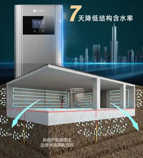 与除湿机和传统防水方式不同,传统防水只能堵漏,而除湿机只能解决空气的问题,地下室潮湿的原因有百分之70来源于结构潮湿,电渗透是通过解决结构的含水率,智能调节,改变水分子的运动方向,让地下室保持干燥舒适的状态。